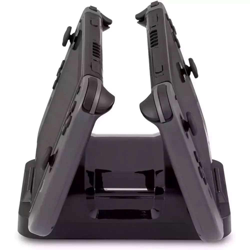 Carga mientras juegas con el soporte de carga de consola doble de Verbatim. Diseñado para usar con Nintendo Switch, este soporte cargador carga dos consolas simultáneamente, ideal para jugar con amigos. Se conecta fácilmente a tu consola para cargarla mientras la usas. Este soporte, de diseño compacto y portátil, es ideal para usar en cualquier lugar, para que puedas juegar por más tiempo.