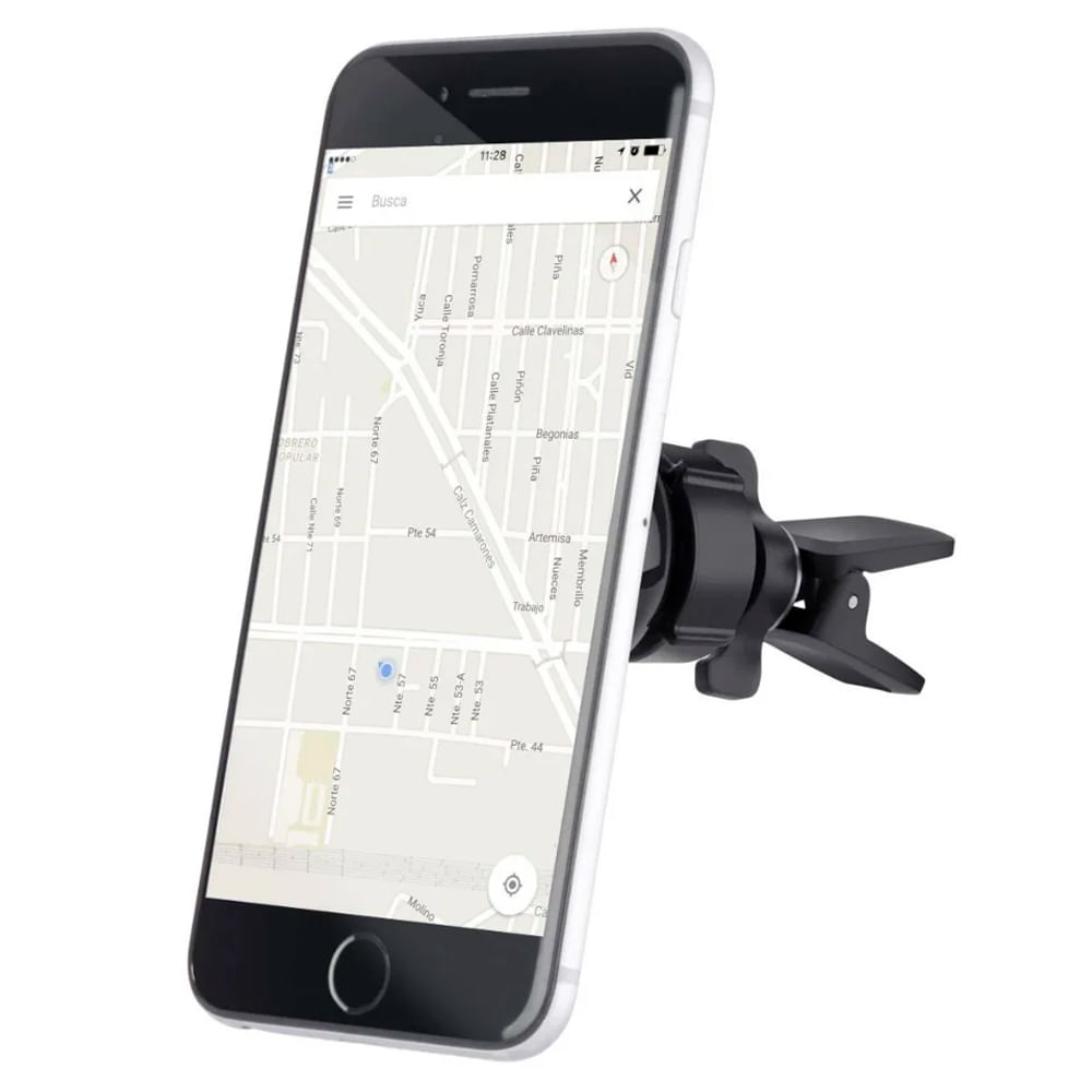 Para ventilas: Gracias a que es ajustable a presión y a sus tenazas antiderrapantes, la sujeción es firme y segura. Es compatible con ventilas rectas de auto.