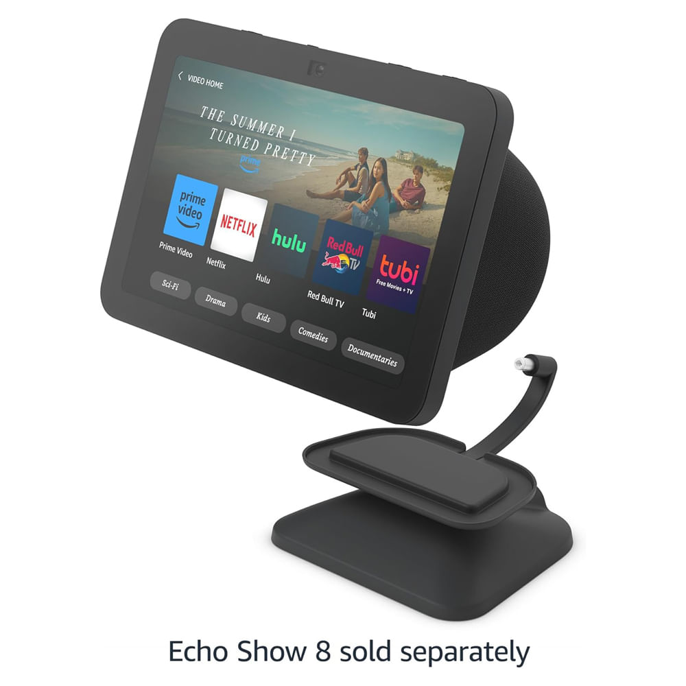 Además de mejorar la ergonomía y el uso diario del Echo Show 8, este soporte integra un práctico puerto de carga USB-C de 12,5 W, ideal para alimentar dispositivos como smartphones, auriculares o pequeños accesorios sin necesidad de ocupar tomacorrientes adicionales. Su diseño combina perfectamente con los colores del Echo Show 8, creando una presentación uniforme y moderna que se integra fácilmente en cocinas, dormitorios, escritorios o salas de estar.