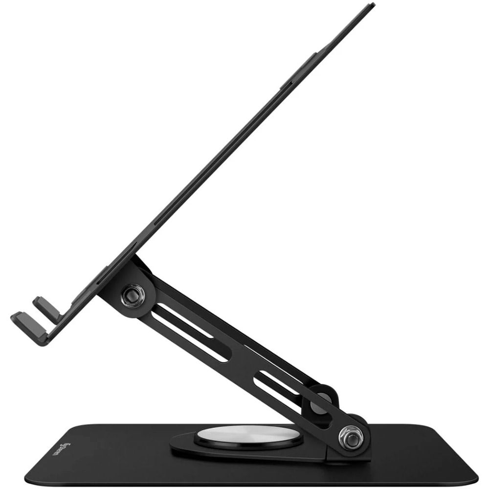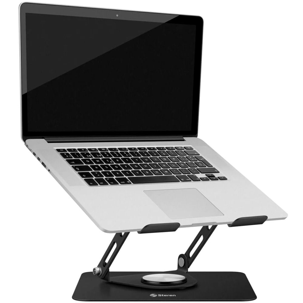El stand cuenta con una base giratoria en su parte inferior que te permite rotar tu laptop 360°, ideal cuando necesitas mostrar información a compañeros o clientes durante reuniones o sesiones colaborativas. Su diseño plegable lo convierte en un accesorio sumamente práctico, ya que al reducir su tamaño puedes guardarlo fácilmente en tu mochila o maletín y llevarlo contigo a cualquier lugar.