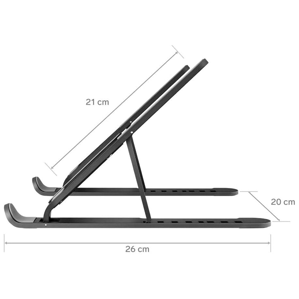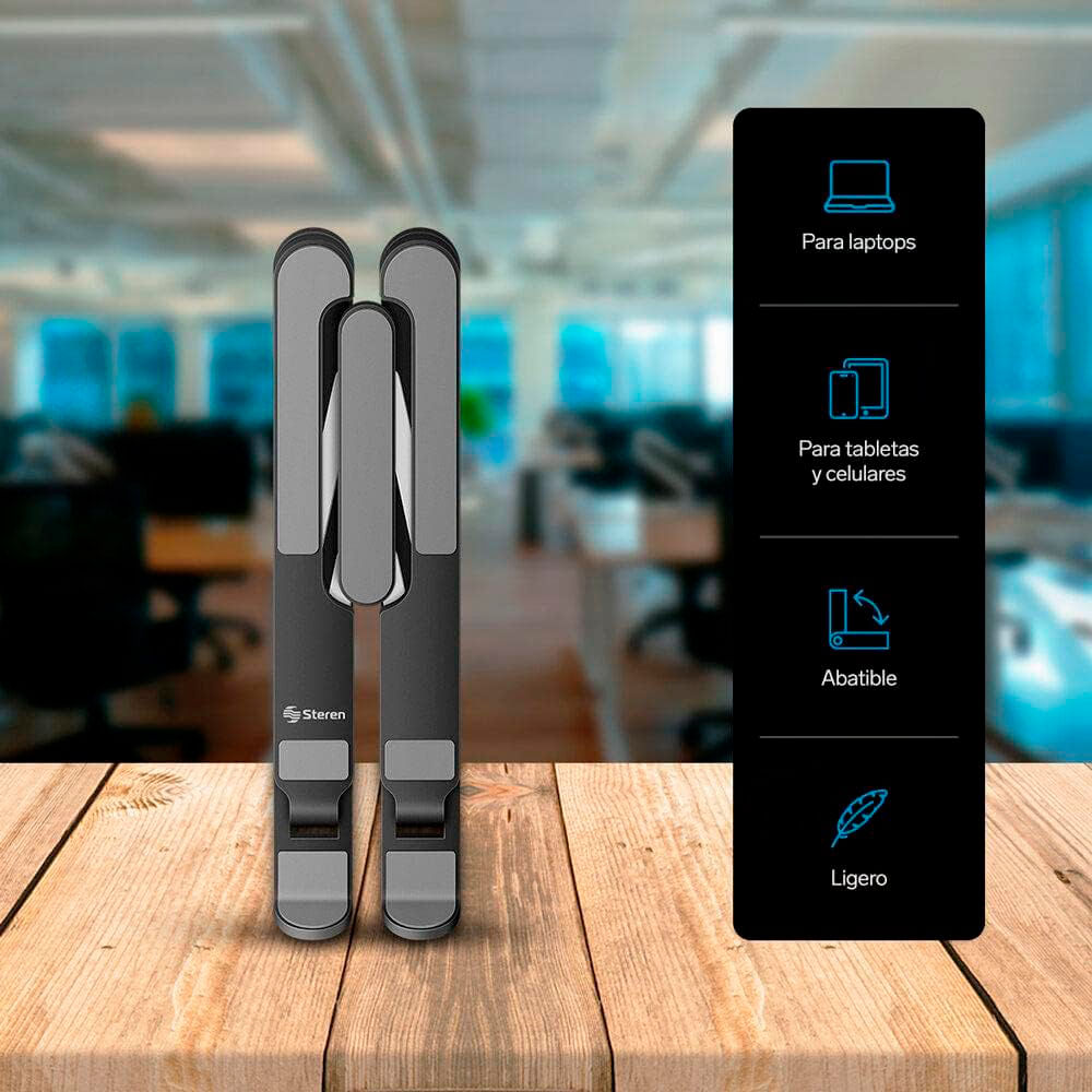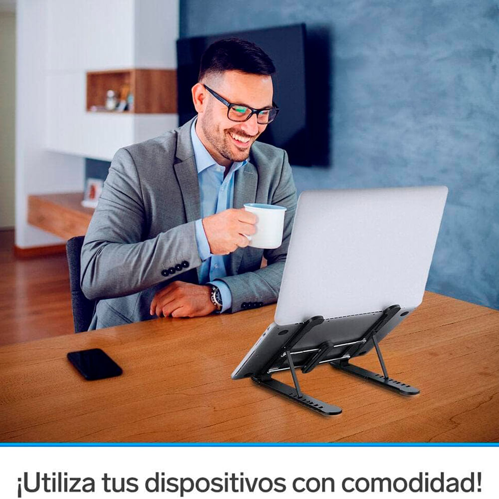Este stand multifuncional consta de 8 posiciones de inclinación y es capaz de abrir aproximadamente de 6 hasta 20 cm para adaptarse perfectamente a dispositivos electrónicos como laptops, tabletas y celulares de cualquier tamaño.