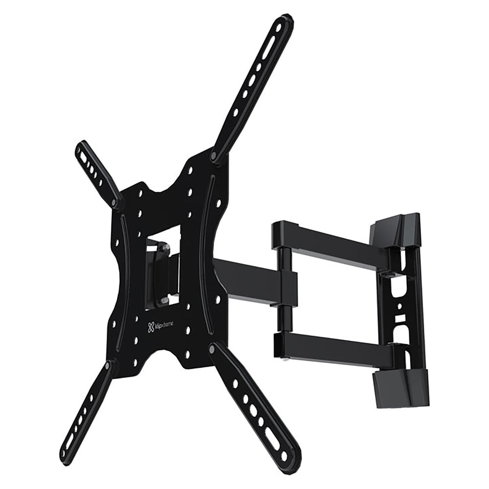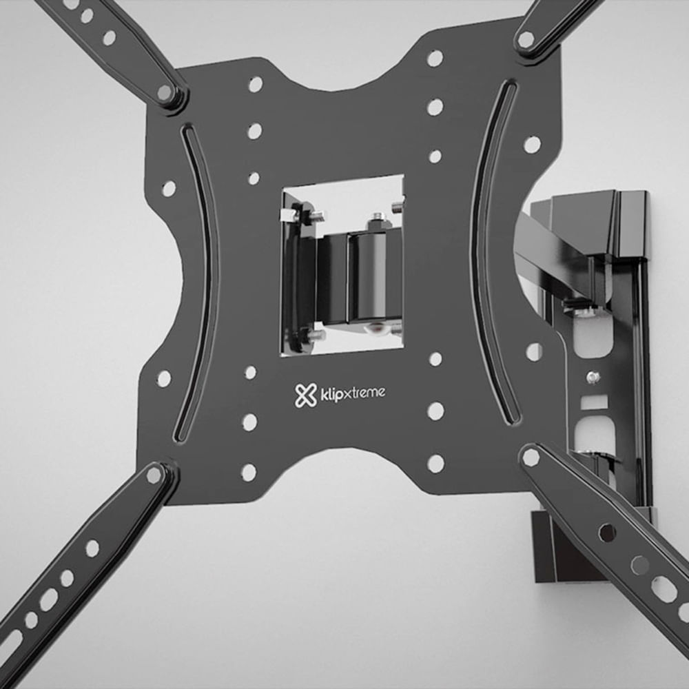 Soporte para pantalla Klip Xtreme diseñado para televisores de 32 a 60 pulgadas, ideal para instalación en pared en espacios residenciales, corporativos o comerciales. Su diseño de brazo artículado proporciona una solución práctica y funcional para el acomodo del ángulo de la pantalla en salas, dormitorios u oficinas. Soporta un peso máximo de 40 kg, ofreciendo seguridad y resistencia para televisores de mayor tamaño. Su estructura robusta y perfil compacto lo convierten en una solución práctica para una visualización cómoda y ordenada.