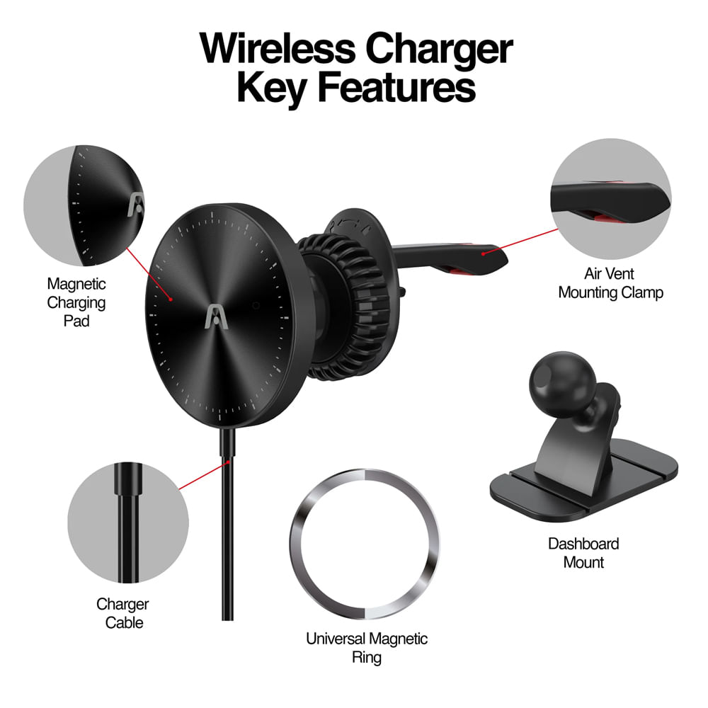 Soporte y cargador magnético para carro 15Watts carga rápida — Comparar Precios | Joolia