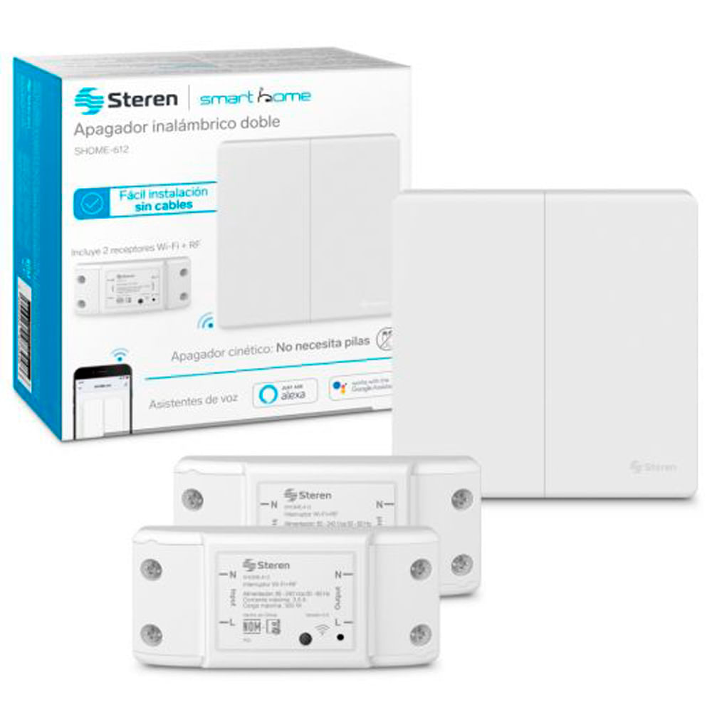 Haz que tu hogar sea más inteligente con este innovador interruptor cinético sin cables. Gracias a su tecnología de generación de energía por presión, no requiere pilas ni conexiones eléctricas complicadas. Solo debes instalarlo y vincularlo al receptor para comenzar a controlar la iluminación de forma práctica y moderna. Además, al integrarse con Wi-Fi, puedes administrarlo desde tu celular con la app Steren Home o mediante asistentes de voz, programando horarios, rutinas y más. Ideal para quienes buscan comodidad, eficiencia energética y facilidad de instalación.