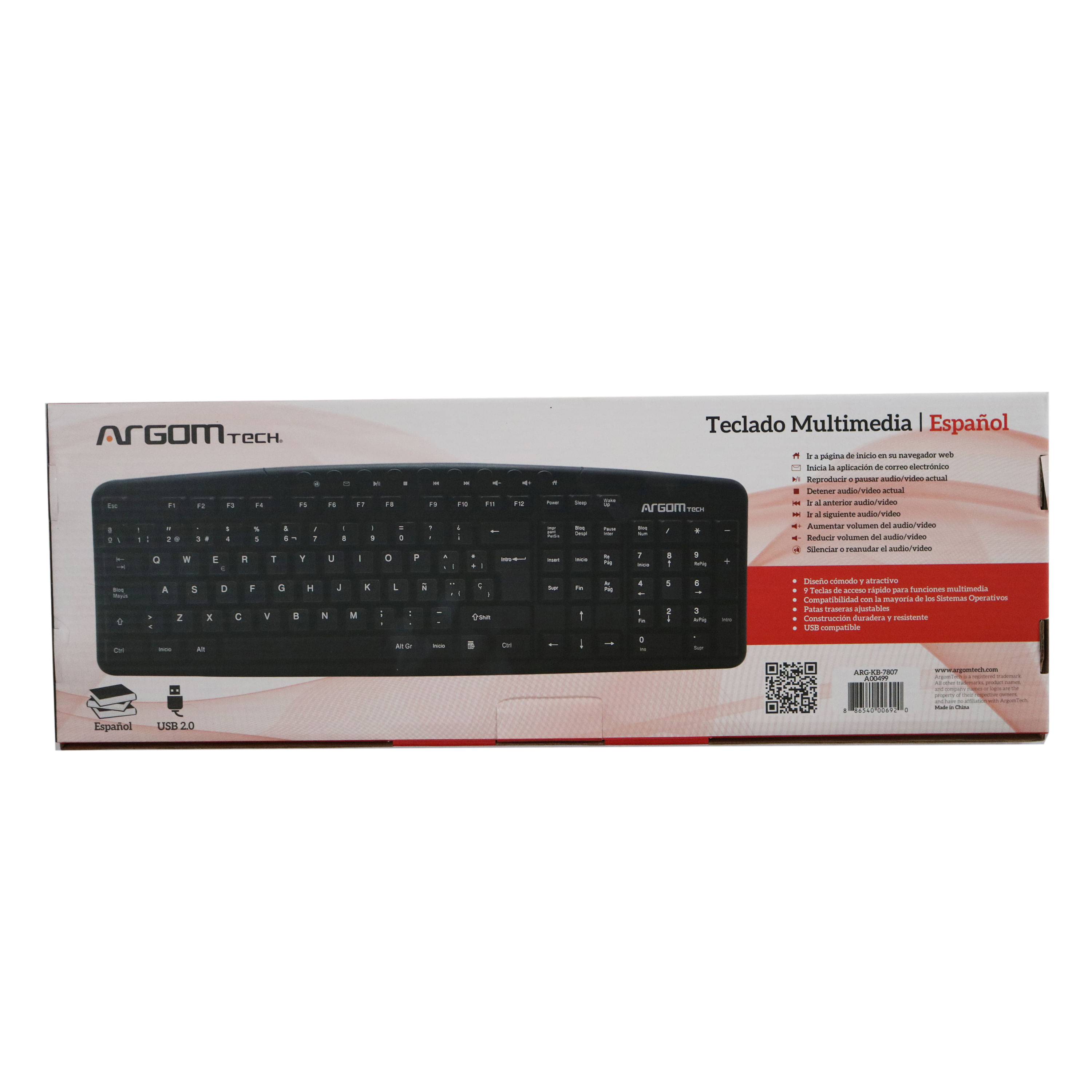 Teclado multimedia en español de Argom con conexión USB, ideal para complementar tu equipo de cómputo. Cuenta con teclas multimedia para un acceso rápido y eficiente a diversas funciones. Perfecto para uso en oficina o en casa. Fabricado con materiales de alta calidad, el teclado Argom está diseñado para resistir el desgaste diario, garantizando una larga vida útil.