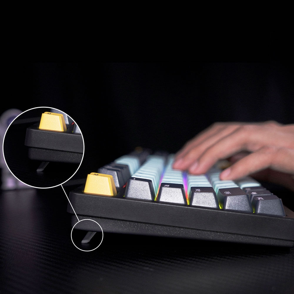 - Materiales: Keycaps de doble inyección, cuerpo de ABS