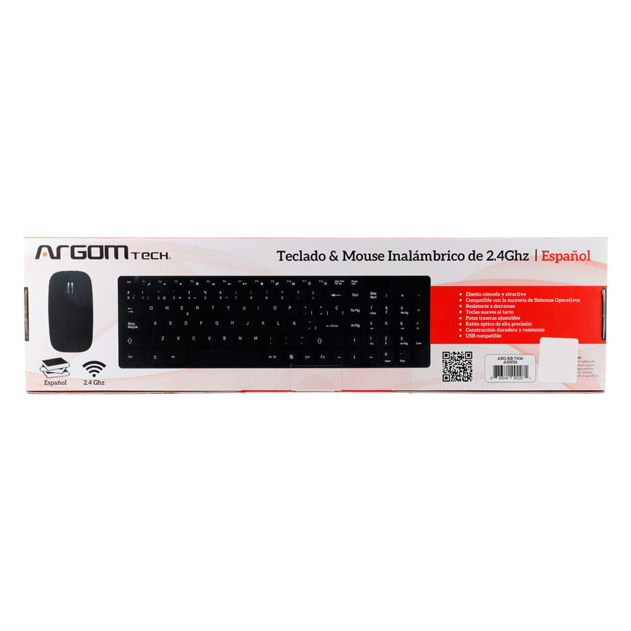 El Teclado y ratón combinados inalámbricos españoles ArgomTech es perfecto para todas sus necesidades de tipeo estándar, con calidad y durabilidad garantizadas. Su mouse óptico con conector USB cuenta con una rueda de 1000 DPI de alta precisión. Simplemente conéctelo y úselo: no necesita configuración o configuración. El diseño delgado hace que sea fácil de transportar y usar en cualquier lugar que vaya.