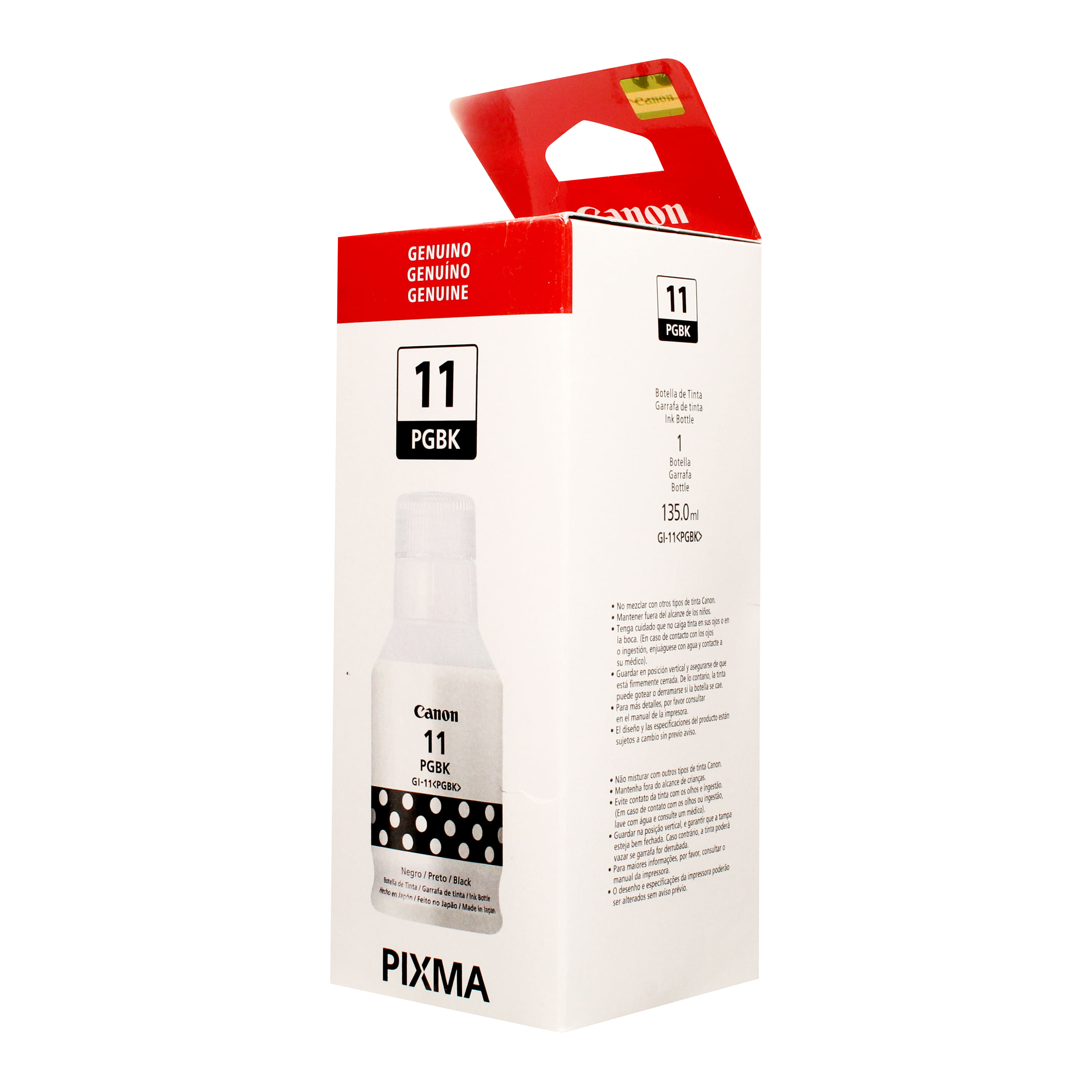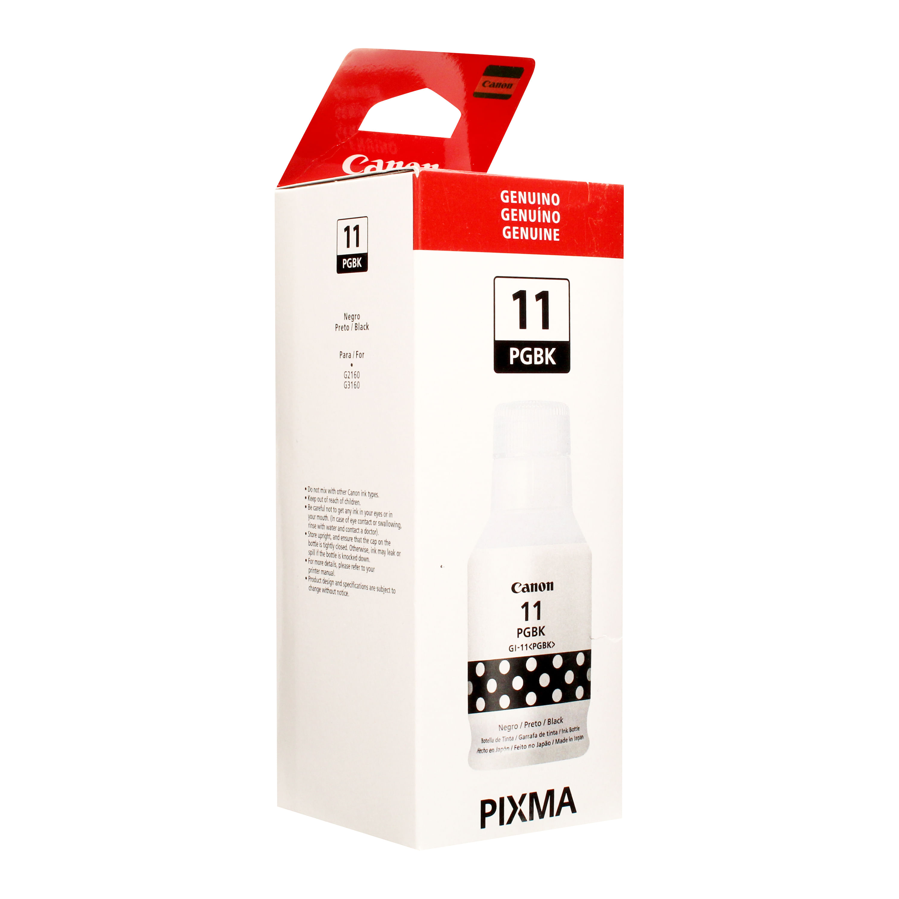 Tinta negra Canon GI-11, ideal para impresoras Canon G2160 y G3160. Ofrece alta calidad de impresión y rendimiento, garantizando colores intensos y duraderos. Con capacidad de 135 ml.