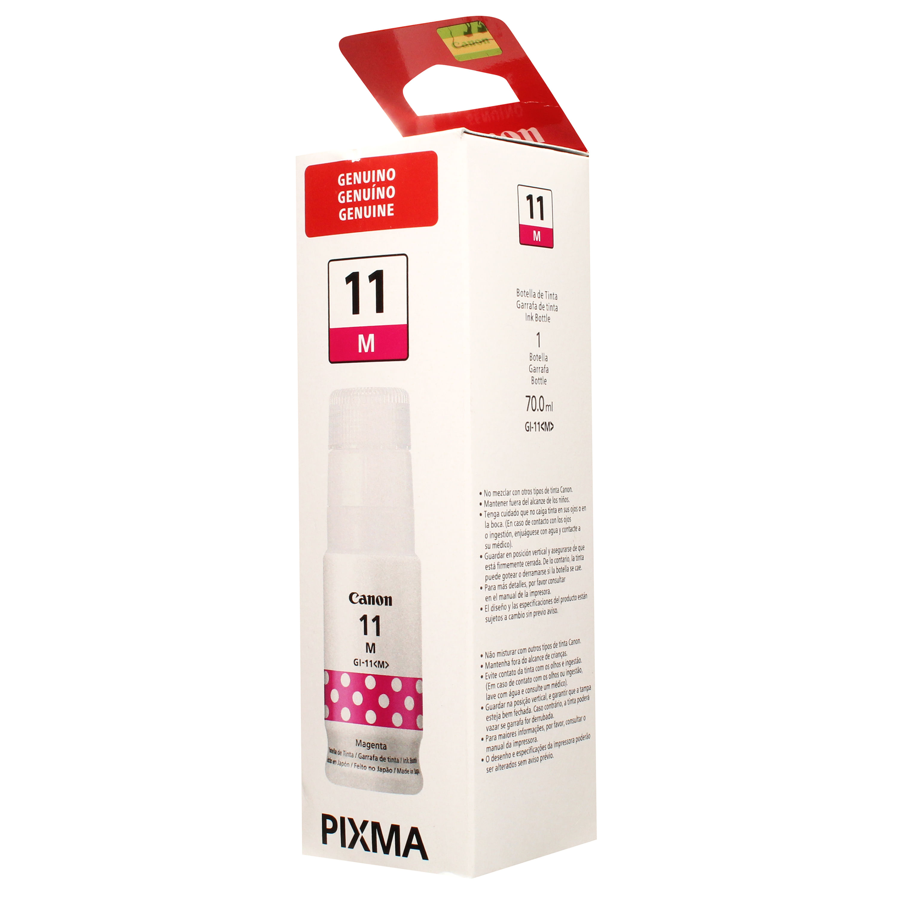 Tinta Canon GI 11, Canon, botella de tinta color magenta de alta calidad para impresoras Canon G2160 y G3160, diseñadas para una impresión eficiente, de alta precisión y durabilidad. Ideal para uso en oficinas y hogar. Rendimiento prolongado con excelente calidad de impresión. Contenido neto: 135Ml