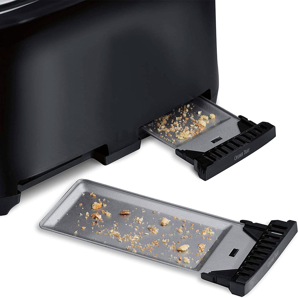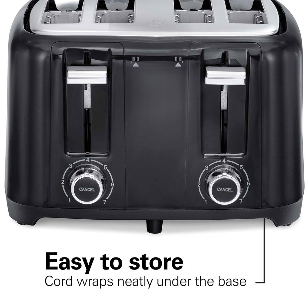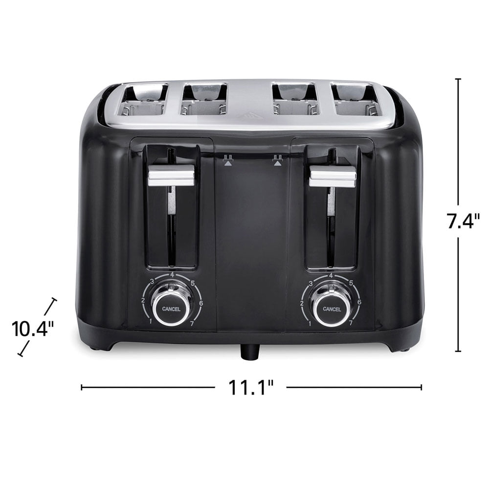 Con la tostadora Hamilton Beach, tostar pan es solo el comienzo. Las ranuras extra anchas lo hacen ideal para bagels, muffins ingleses o rebanadas de pan artesanal. Esta tostadora para 4 rebanadas es fácil de usar con una función de refuerzo de tostadas que le da a los panes una gran elevación para retirarlos. Y el apagado automático apagará la tostadora al final de su ciclo, incluso si la comida se atasca.