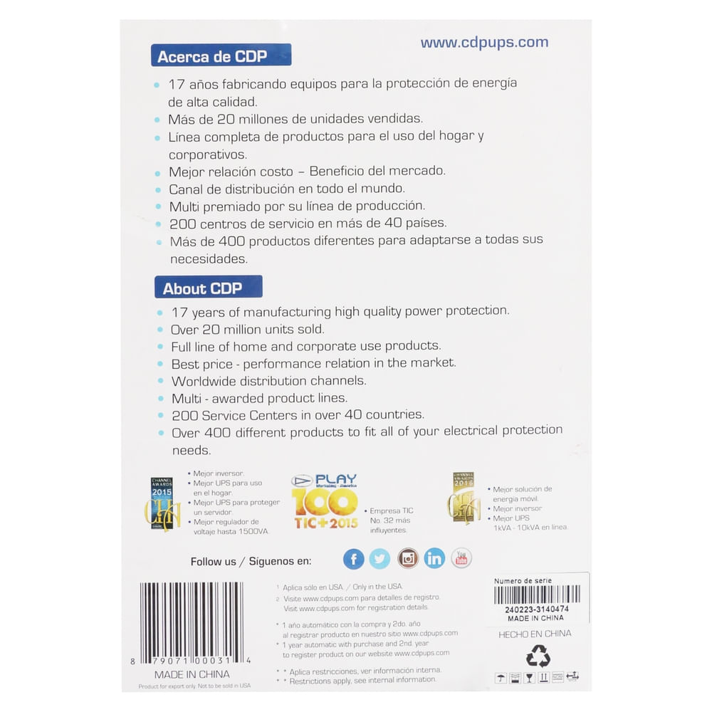 Regulador de voltaje de 1000VA y 500W de la marca Targus, diseñado para mantener un suministro de energía constante y proteger dispositivos electrónicos contra picos y caídas de tensión. Ideal para computadoras y otros equipos sensibles. Con el regulador CDP de 1000VA y 500W, puedes estar tranquilo sabiendo que tus equipos sensibles, como computadoras, televisores, consolas de videojuegos y otros dispositivos electrónicos, están protegidos contra sobretensiones, picos de corriente y bajones de energía que podrían causar daños irreparables.