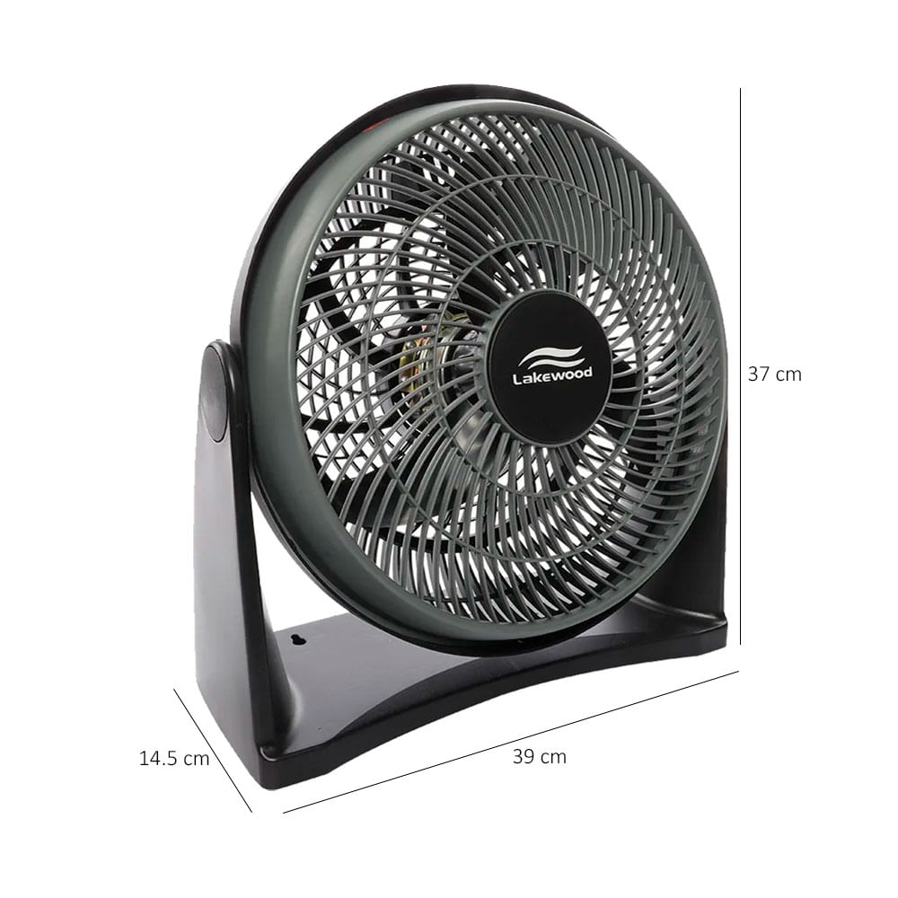Ventilador de piso con diámetro de 12” pulgadas; cuerpo de plástico color negro.