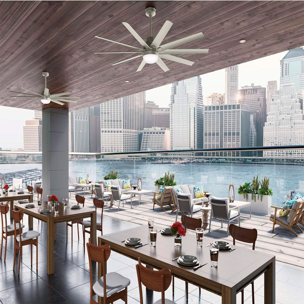 Ventilador de techo moderno: el moderno ventilador Overton viene con una luz LED cubierta de vidrio pintado en blanco que mantendrá el interior del hogar actual e inspirado; mide 72 x 72 x 18.8 pulgadas.