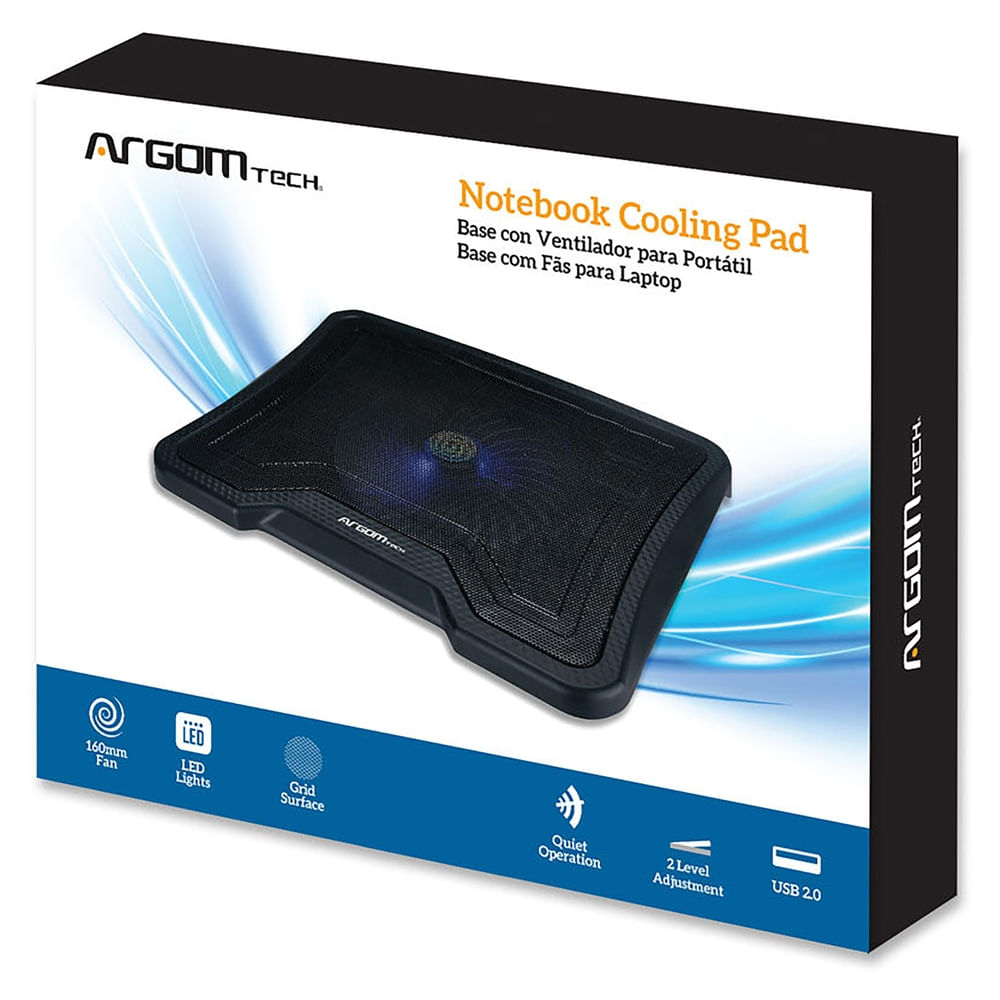 Ventilador para laptop de la marca ARGOM con dos puertos USB. Ideal para mantener tu dispositivo fresco durante largas jornadas de trabajo o juego. Compacto y portátil, fácil de transportar. Este tipo de ventilador es ideal para aquellos que utilizan sus laptops de forma intensiva o en situaciones donde la ventilación natural no es suficiente para mantener la temperatura adecuada del dispositivo.