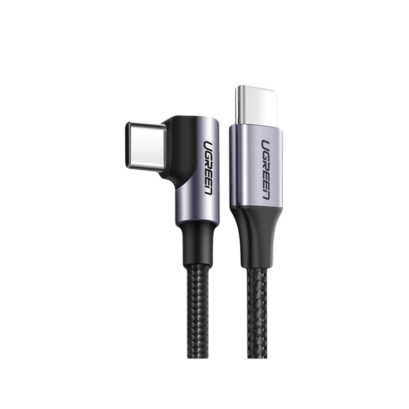 Cable usb-c macho-macho ugreen us255 1m braided 60w negro en angulo de 90grados 50123